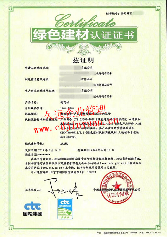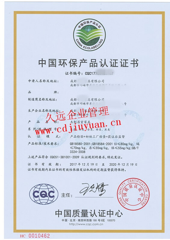 中國環(huán)境標(biāo)志產(chǎn)品認(rèn)證證書(十環(huán)認(rèn)證)