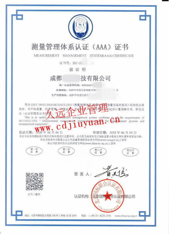 知識產(chǎn)權(quán)管理體系認(rèn)證證書